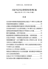 仅限学习交流,请勿抄袭和出售—1—习近平总书记重要讲话系列汇编(截止2022年5月31日共370篇)目录在庆祝中国国际贸易促进委员会建会70周年大会暨全球贸易投资促进峰会上的致辞...............................................20正确认识和把握我国发展重大理论和实践问题..............23在庆祝中国共产主义青年团成立100周年大会上的讲话31加快建设科技强国实现高水平科技自立自强..................43携手迎接挑战,合作开创未来...........................................58促进...