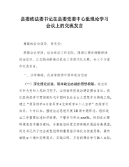 县委政法委书记在县委党委中心组理论学习会议上的交流发言