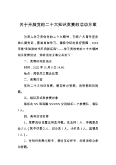 二十大精神应知应会知识竞赛考试测试复习题目题库(15份完整试卷含答案)另附:二十大精神学习专题培训班开班式重要讲话目录学习贯彻党的二十大精神应知应会知识题库有答案(单选80道、多选40道、判断30道、填空50道)中国共产党第二十次全国代表大会应知应会题库(单选+多选共240题)学习党的二十大精神测试题有答案党的二十大精神学习测试卷(含答案)学习党的二十大精神专题测试题库有答案党的二十大测试题有答案学习党的二十大精神知识竞赛活动题库有答案党的二十大专项内容+预测(280题)党的二十大报告应知应会知识点50题(附参考答案)学习党的二十大报告精神应知应会知识竞赛测试题(后有答案,含填空题、单选题、判...