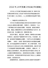 2018年上半年党建工作总结(市纪委版)今年来,XX市纪委不断加强机关党建工作,秉承“打铁还需自身硬”的宗旨,以忠诚干净担当标准淬炼监督执纪铁军,努力建设一支让党放心、让人民信赖的纪检监察干部队伍。一、铸魂补钙,拧紧思想总开关今年来,市纪委坚持把强化党性党风党纪教育作为经常之举,纳入委局机关集中辅导、专题学习、党务培训、“三会一课”等重点内容,采取知识竞赛、专家讲座、参观红色教育基地、重温入党誓词等形式,切实拧紧理想信念“总开关”,筑牢信仰之基、补足精神之钙、把稳思想之舵。突出学习重点。通过自学、集体学、集体研讨和专家辅导等形式,组织党员干部原原本本学习中央、中央纪委,省委、省纪委和市委重要会...