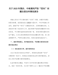 关于2025年国庆、中秋期间严防“四风”问题自查自纠情况报告
