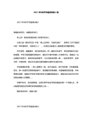 学校学生中秋节演讲稿2篇学生中秋节演讲稿1尊敬的各位领导、老师,亲爱的同学们,大家好!我们中华民族的传统节日——中秋节即将来临了,今天,我们在国旗下讲话的题目是:中秋情思。在这金秋送爽的九月,我们又将迎来一年一度的中秋佳节,又将欣赏到皓月当空的美景,当我们仰望苍穹时,脑海中定会浮现起那优美的诗句:“人有悲欢离合,月有阴晴圆缺,此事古难全”是啊,人生有诸多事情难以两全,多少在外求学和工作的人们,为了自己的理想,此时不能回到亲人身边,正所谓,“每逢佳节倍思亲。”中秋节一直被人们喻为有人情味,最富有诗情画意的节日,而这一天天上的明月又分外明亮,分外的圆,所以又叫团圆节。中秋赏月,民间一直流传着多个不...