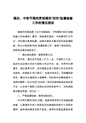 国庆、中秋节期间贯彻落实“四风”监督检查工作的情况报告根据市纪委监委《关于加强国庆、中秋期间“四风”监督检查工作的通知》要求,我局紧盯国庆、中秋期间节日节点,切实强化教育监督,加强对局机关重点岗位的监督检查,持之以恒加强“四风”监督检查工作,取得了较好成效。现将有关情况报告如下:一、强化宣传教育,提高思想认识。两节前,通过召开党组(扩大)会、干部职工大会、组织生活会等方式向干部职工传达中央、省、市两节纪律要求,强化教育引导,切实增强全局干部职工的主动性和自觉性,牢固树立“四个意识”,自觉约束自己。开辟廉政宣传栏、廉洁文化墙宣传上级精神。同时将中央围绕落实八项规定精神、反对“四风”出台的一系列法...