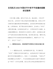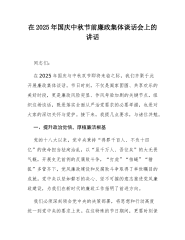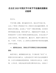 在2025年国庆节中秋节节前廉政提醒谈话会议上的讲话20250919