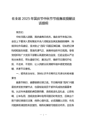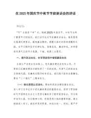 在2025年国庆节中秋节节前廉政提醒谈话会议上的讲话同志们:中秋月圆人团圆,国庆家兴国富强。在“双节”将至、举国同庆的美好时刻,我们召开这次廉政提醒谈话会,既是落实全面从严治党要求的重要举措,也是对同志们的一次“政治提醒”“廉政叮咛”。节日是欢乐祥和的“团聚期”,也是“四风”问题的“易发期”——从近年来查处的案例看,不少违纪行为都发生在节日期间:有的借“走亲访友”之名收送礼品礼金,有的用公车办私事、赴宴聚会,有的搞“节日福利”变相加码……这些行为看似“人情往来”,实则触碰纪律红线;看似“小事小节”,实则关乎作风形象。今天,我们围绕“廉洁过双节”谈认识、明要求、敲警钟,就是要让同志们在“团圆味”里多添“廉洁味”,在“节日红”中守好“政治本色”。一、认清形势,增强廉洁自律的政治自觉全面从严治党永...