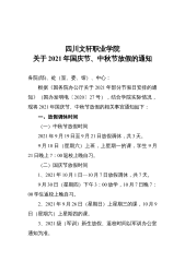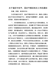 中秋、国庆期间工作通知:关于做好中秋节、国庆节期间有关工作的通知