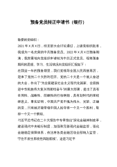 预备党员转正申请书(银行)敬爱的党组织:2021年X月X日,经支部大会讨论通过,上级党组织批准,我成为一名光荣的中共预备党员。2022年X月X日预备期满,我郑重地向党组织申请转为中共正式党员。现将预备期间的思想、学习、生活情况向党组织汇报如下:在我这一年的预备期里,我们党领导全国人民再接再厉,迎来了党的二十大胜利召开。党的二十大是一个催人奋进的大会,作出了“为全面建设社会主义现代化国家、全面推进中华民族伟大复兴而团结奋斗”的重大部署,提出了具有全局性、战略性、前瞻性的行动纲领,具有划时代的里程碑意义。事实证明,中国共产党不愧为伟大、光荣、正确的党,只有她才能带领中国人民夺得一个又一个胜利,取得...