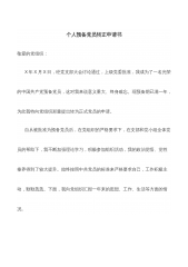 个人预备党员转正申请书敬爱的党组织:X年X月X日,经党支部大会讨论通过,上级党委批准,我成为了一名光荣的中国共产党预备党员,这对我来说意义重大、终身难忘。现预备期已满一年,为此我特向党组织郑重提出转为正式党员的申请。自从被批准为预备党员后,在党组织的严格要求下,在支部和党小组全体党员的帮助下,我不断加强理论学习,积极参加组织活动,我的政治觉悟、党性修养得到了较大提升。始终按照中共党员的标准来严格要求自己,工作积极主动,勤勤恳恳。下面,我向党组织汇报一年来的思想、工作、生活等方面的情况。一、思想方面。一年来,我能够主动加强政治学习,利用更多时间认真学习党史和党章,了解我们党的光辉奋斗史。我能够深...