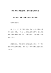 2024年6月预备党员转正思想汇报范文(31篇)2024年6月预备党员转正思想汇报范文篇1敬爱的党组织:20__年_月_日,经党组织批准,我成为一位光荣的中国共产党预备党员,一年来,在组织的培养教育下,我认真依照党员的标准严格要求自己,在思想政治、工作和学习上都取得了进步。预备期已满,我慎重向党组织提出转正申请。为了便于党组织对我的考核审查,我将自己一年来的情况向组织作以下汇报:在一年的预备期中,我在党组织的严格要求下,在支部党员的帮助教育下,不管政治上、思想上都取得了较大进步。特别是通过参加党内一系列活动,不但加深了我对党的性质、宗旨的熟悉,更增强了本身的党性修养,从而熟悉到做一位合格的共产...