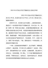 2012年8月份公司员工预备党员入党转正申请2012年8月份公司员工预备党员入党转正申请,关键词是转正申请,公司员工预备党员,敬爱的党组织:2009年6月,经支部大会讨论通过,上级党组织批准,我成为了一名光荣的中国共产党预备党员,至今已近一年。根据《党章》第一章第七条之规定,在我的预备期届满之际,我郑重向党组织提出转正申请,请党组织根据我在预备期间的表现,接纳我为中国共产党正式党员。在接受党组织考察的一年期间,我戒骄戒躁,不断注意提高自身修养,在各方面以一名正式党员的标准严格要求自己,无论思想,学习,还是工作上,都有了很大的提高。下面,我将就自己一年来的表现,向党组织作详细的汇报。一年来,在党...