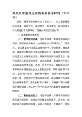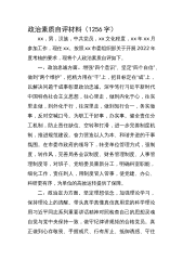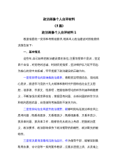 政治画像个人自评材料(3篇)政治画像个人自评材料1根据省委统一安排和考察组要求,现将本人政治建设对照检查情况报告如下:一、基本情况这些年,自己始终把政治建设摆在首位,注重培塑四个意识,坚定四个自信,对党绝对忠诚、时刻听党指挥,坚决维护以习近平同志为核心的党中央权威,牢牢把握了政治建设的正确方向。一是坚持理论武装锤炼政治素养。着眼坚定理想信念、强化核心意识,跟进学习党的十九大精神和新时代中国特色社会主义思想,读原著、学原文、悟原理,把握创新理论的科学内涵和精髓要义,不断加强主观世界改造,掌握思考问题、分析问题的科学方法和锐利思想武器,自觉做到考验面前不迷失方向。二是坚持站位全局提升政治视野。能够...
