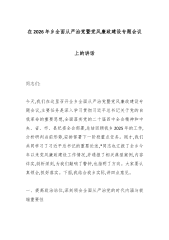 在2026年乡全面从严治党暨党风廉政建设专题会议上的讲话同志们:今天,我们在这里召开全乡全面从严治党暨党风廉政建设专题会议,主要任务是深入学习贯彻习近平总书记关于党的自我革命的重要思想,全面落实党的二十届四中全会精神和中央、省、市、县纪委全会部署,总结回顾我乡2025年的工作,分析研判当前形势,安排部署下一阶段重点任务。刚才,我们共同学习了习近平总书记的重要论述,*同志也汇报了全乡今年以来党风廉政建设工作情况,并通报了相关典型案例,内容详实,剖析深刻,为我们敲响了警钟,也指明了方向。大家要认真领会,抓好落实。下面,我结合我乡实际,讲四点意见。一、提高政治站位,深刻领会全面从严治党的时代内涵与极端重要性党的十八大以来,以习近平同志为核心的党中央以前所未有的决心和力度推进全面从严治党,开启了党的...