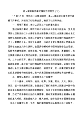 县x局观看开幕式情况汇报范文(1)10月16日,党的二十大胜利召开,县xx局组织全体干职工收看了开幕式。并进行了讨论和交流,畅谈了认识和体会。一、观看开幕式,充分认识到二十大的重大意义通过收看开幕式,聆听习总书记在大会上作的工作报告,党员们深刻认识到党的二十大是在全党全国各族人民迈上全面建设社会主义现代化国家新征程、向第二个百年奋斗目标进军的关键时刻召开的一次十分重要的大会。这次大会将进一步动员全党全国各族人民高举中国特色社会主义伟大旗帜,全面贯彻新时代中国特色社会主义思想,弘扬伟大建党精神,自信自强、守正创新,踔厉奋发、勇毅前行,为全面建设社会主义现代化国家、全面推进中华民族伟大复兴而团结奋...
