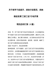 关于抓学习促提升、抓执行促落实、抓效能促发展'三抓三促"行动开展情况总结汇报(5篇)自省、市、区“三抓三促”行动正式启动以来,XX乡迅速传达学习各级“三抓三促”行动动员部署会议精神,紧扣中心大局,聚焦工作重点,凝心聚力抓落实,全力推动全乡党员干部以过硬本领、优良作风抓发展、谋发展、促发展,确保“三抓三促”行动取得实实在在的效果。迅速亻专达学习,高位安排部署凝神谋发展,实干兴陇原。全区“三抓三促”行动动员部署会议召开后,乡党委准确把握开展“三抓三促”行动的重大意义、根本任务、工作目标、方法路径和实践要求,迅速谋划推动全乡“三抓三促”行动。2月17日,先后召开乡党委(扩大)会议和XX乡“...