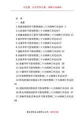 公文堂公文写作之家,体制人加油站目录一、党委1.各级党组织学习贯彻党的二十大精神工作总结12.江苏省学习宣传贯彻二十大精神工作总结73.安徽省直机关工委学习宣传贯彻二十大精神工作总结114.钦州市学习宣传贯彻二十大精神工作总结135.玉溪市学习宣传党的二十大精神工作总结176.天水市学习宣传贯彻二十大精神工作总结207.嘉峪关市学习宣传贯彻二十大精神工作总结228.无锡市学习宣传贯彻二十大精神工作总结249.定西市学习宣传贯彻二十大精神工作总结2610.张掖市学习宣传贯彻二十大精神工作总结2811.包头市学习宣传贯彻二十大精神工作总结3012.十堰市学习宣传贯彻二十大精神工作总结3413.巴音...
