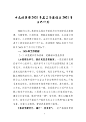 1市文旅集团2020年度工作总结及2021年工作计划2020年以来集团坚决落实市委政府及市国资委决策部署内强管理外树形象积极拓展融资通道扎实推进项目建设公司管理正规有序各项工作务实开展较好地完成了上级安排的各项工作任务。现将集团2020年度工作总结及2021年工作计划汇报如下。一、2020年工作总结(一)以党建工作为引领发挥核心堡垒作用1加强理论学习狠抓党员思想教育。一是坚持开展理论学习中心组学习组织学习《习近平谈治国理政》第三卷等X次开展集中讨论X次形成交流学习心得X篇;二是通过组织集中学习、专题党课、党员自学等方式牢牢把握正确的政治方向把深入学习贯彻习近平新时代中国特色社会主义思想和党的十...