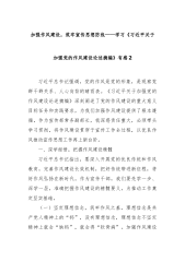加强作风建设,筑牢宣传思想防线——学习《习近平关于加强党的作风建设论述摘编》有感2习近平总书记强调,党的作风是党的形象,是观察党群干群关系、人心向背的晴雨表。《习近平关于加强党的作风建设论述摘编》深刻阐述了党的作风建设的重大意义目标任务和实践要求,为我们加强作风建设提供了根本遵循。作为宣传部常务副部长,我深感责任重大,必须带头学习贯彻,将作风建设贯穿于宣传工作全过程,以优良作风推动宣传思想工作再上新台阶。一、深学细悟,把握作风建设精髓习近平总书记指出,要深入开展党的优良传统和作风教育,完善作风建设长效机制,把好传统带进新征程,将好作风弘扬在新时代。作为宣传干部,我们要先学一步、深学一层,准确把握作风建设的精髓要义,为推动工作奠定坚实基础。(一)坚定理想信念,筑牢作风之基。理想信念是共产党人精...