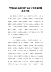 XX管理所党支部班子2025年度组织生活会对照检查材料(六个对照)按照《中共泰兴市水务局党组关于召开2025年度基层党组织组织生活会和开展民主评议党员的通知》要求,XX管理所党支部紧紧围绕“深入学习贯彻习近平新时代中国特色社会主义思想,全面贯彻落实党的二十届四中全会精神,以打攻坚战、持久战的决心和恒心,锲而不舍落实中央八项规定精神,推进作风建设常态化长效化”这一主题,认真组织开展会前学习、广泛征求意见、深入谈心谈话,对照加强理论武装、执行上级组织决定、严格组织生活、加强党员管理监督、做好群众工作、抓好自身建设等6个方面,深入查摆问题、剖析原因、明确整改方向。现将有关情况报告如下。一、存在的主要问题(一)在加强理论武装方面一是政治理论学习存在“浅尝辄止”现象。支部在组织党员学习习近平新时代中国...