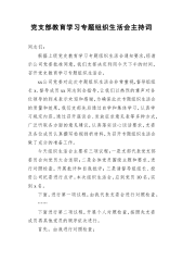 在市委办公室第一党支部组织生活会上的讲话——旗帜鲜明讲政治王战营今天,我和张弛同志以普通党员身份参加第一党支部组织生活会,和支部的同志们谈心谈话,一起学习,共同交流。刚才,大家一起学习了习近平总书记在十九届中央政治局第六次集体学习时的重要讲话,总书记从把准政治方向、坚持党的政治领导、夯实政治根基、涵养政治生态、防范政治风险、永葆政治本色等六个方面就如何加强党的政治建设进行了全面论述,这是我党历史上第一次深刻系统地阐释了党的政治建设的科学内涵和重大意义,大家必须认真学习领会,抓好贯彻落实。一政治问题,任何时候都是根本性的大问题。毛泽东同志曾指出,“没有正确的政治观点,就等于没有灵魂”。邓小平同志...
