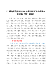 根据镇机关支部《关于召开2021年度支部组织生活会和开展民主评议党员的方案》要求,我紧扣主题,通过参加机关党支部学习和个人自学的方式,认真学习了习近平新时代中国特色社会主义思想、党的十九届六中全会精神、习近平总书记对xx做出的重要讲话和指示精神等内容。会前,我严格对照习近平总书记关于严肃党内生活的重要指示精神,对照党章党规党纪,对照初心使命,结合个人思想和工作实际,深入开展了谈心谈话、广泛征求了班子成员及干部群众的意见建议、认真查摆了自身存在的问题,在此基础上认真撰写了个人发言提纲。一、上年度组织生活会问题整改情况2020年度专题组织生活会后,我通过开展谈心谈话、征求意见、自身查摆出等方式,对...