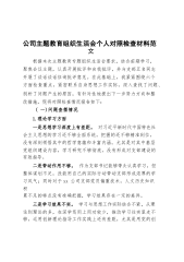 公司主题教育组织生活会个人对照检查材料范文根据本次主题教育专题组织生活会要求,结合前期学习,聚焦会议主题,认真开展批评和自我批评,并与支部五名同志开展了谈话谈话征询批评意见。在此基础上,我紧紧围绕六个方面检查重点,紧密联系自身思想工作实际,深入查找了问题、剖析了问题产生的原因,有针对性地提出下一步努力方向和整改措施,现将对照检查情况报告如下:(一)问题查摆情况1.理论学习方面一是思想学习深度上有差距。对习近平新时代中国特色社会主义思想的学习还不够全面系统,把握的还不够精准到位,没有深刻领悟其中的哲学意蕴和丰富内涵。尤其是对其中基层党组织建设内容,学习研究不够彻底,没有形成对支部建设的有效指导。...