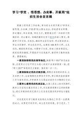 学习“学党、悟思想、办实事、开新局”组织生活会发言稿