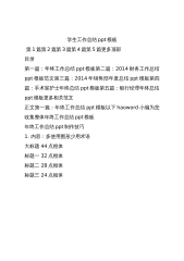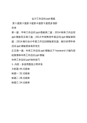 会计工作总结ppt模板第1篇第2篇第3篇第4篇第5篇更多顶部目录第一篇:年终工作总结ppt模板第二篇:2014财务工作总结ppt模板范文第三篇:2014年销售部年度总结ppt模板第四篇:2014银行会计年度工作总结模板第五篇:银行经理年终总结ppt模板更多相关范文正文第一篇:年终工作总结ppt模板以下haoword小编为您收集整体年终工作总结ppt模板年终工作总结ppt制作技巧1.内容:多使用图形少用术语大标题44点粗体标题一32点粗体标题二28点粗体标题三24点粗体如果有必要请多以图形表达你的思想。因为图形更容易让人理解,同时也让听众印象深刻。当然图形也会帮助演讲者更好的进行阐述。但是同样你...