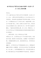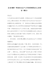 在XX镇第一季度安全生产工作安排部署会议上的讲话(精品)同志们:今天,我们在这里召开全镇第一季度安全生产工作安排部署会议,主要任务是深入学习贯彻习近平总书记关于安全生产的重要论述,全面落实省、市、县相关会议精神,总结回顾我们2025年的工作,分析研判当前面临的严峻形势,并对2026年第一季度的安全生产工作进行全面、细致的安排和部署刚才,我们共同学习了习近平总书记的重要论述和上级会议的核心精神,这为我们接下来的工作指明了方向、提供了根本遵循。下面,我讲四点意见。一、肯定成绩、正视问题,清醒认识当前安全生产工作的极端重要性刚刚过去的2025年,是全镇上下凝心聚力、攻坚克难的一年。在镇党委的坚强领导下,在全镇广大干部群众的共同努力下,我们始终将安全生产作为一切工作的基石和底线,坚持“安全第一、预防...