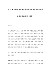 在XX镇2025年第四季度安全生产和消防安全工作总结会议上的讲话(精品)