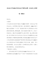 在XX镇2026年元旦节前安全生产工作会议上的讲话同志们:今天,我们在这里组织召开全镇2026年元旦节前安全生产工作会议,这既是一次节前的动员部署会,也是一次岁末年初安全生产工作的警示提醒会。刚才,我们集中传达学习了XX县关于高层建筑重大火灾风险隐患排查整治的专题会议精神,共同观看了一部令人警醒的安全生产警示教育片,部分单位和村(社区)的负责同志也结合自身实际作了很好的发言,讲了问题,谈了打算,明确了措施。总的来看,这次会议准备充分、内容务实、时机关键。2026年元旦和新春佳节即将来临,群众出行、聚会等活动将大幅增加,各类生产经营建设活动也进入收官冲刺的关键时期。同时,冬季低温、雨雪、冰冻等灾害性天气多发,诱发事故的因素增多,安全生产形势的复杂性、严峻性进一步加剧。我们必须清醒地认识到,越是...