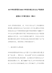 在XX市粮食和物资储备系统今冬明春安全生产工作部署会议上的讲话(精品)同志们:今天,我们在这里召开全市粮食和物资储备系统今冬明春安全生产工作部署会议,主要任务是深入分析当前系统内安全生产面临的严峻形势,全面部署今冬明春这一关键时期的安全生产和消防安全工作。这次会议既是一次警示教育会,也是一次责任落实会,更是一次决战决胜的动员会。刚才,几位同志通报了近期专项检查的情况,指出的问题客观中肯,提出的建议也很有针对性。下面,我讲三点意见。一、提高政治站位,深刻认识安全生产工作的极端重要性和现实紧迫性粮食安全是“国之大者”,是维护国家安全的重要基石。粮食和物资储备系统的安全,直接关系到粮食安全这一“压舱石”是否稳固,关系到社会大局的和谐稳定,关系到人民群众的生命财产安全。我们必须从政治和全局的高度,深...