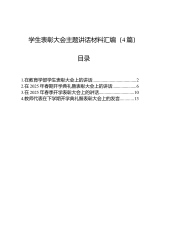 在2025年XXX职业院校技能大赛表彰大会暨2024-2025学年第一学期优秀学生表彰大会上的讲话尊敬的各位老师、亲爱的同学们:大家下午好!万物复苏,又是一年春暖花开季。今天,我们齐聚一堂,共同表彰在2025年XXX职业院校技能大赛和2024-2025学年第一学期涌现出的优秀教师和同学。你们用智慧和汗水书写了新时代职业教育的精彩篇章,在此,我代表学校党总支向获奖师生致以崇高的敬意和衷心的感谢!过去的2024年,老师们用辛勤的汗水浇灌出满园芬芳,同学们用青春的荣光书写赛场芳华,参赛师生斩获一等奖X项、二等奖X项、三等奖X项。饲料营养与检测、短视频制作、中西烹饪、网络建设与运营等多个赛项的师生,以...