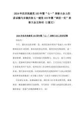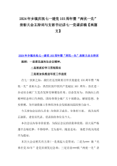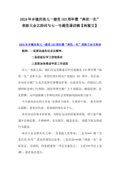 2024年在庆祝建党103年暨“七一”表彰大会上的讲话稿与乡镇庆祝七一建党103年暨“两优一先”表彰大会主持词(2篇文)