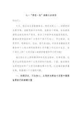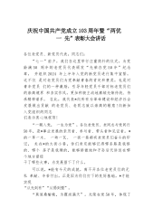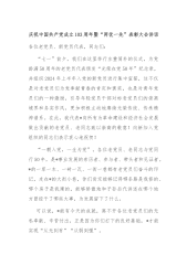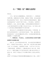 乡镇七一表彰大会讲话:缅怀光辉历史踊于争先创优努力推进x镇基层组织建设全面进步同志们:今天,我们在这里隆重集会庆祝中国共产党成立103周年,共同回顾我们党走过的103周年光辉历程,增强对党的热爱和信仰,坚定坚决跟党走的信心。等下,还要表彰为全镇经济社会发展做出突出贡献的x优秀基层党组织、x名优秀共产党员。在此,我谨代表镇党委向受表彰的单位和个人表示热烈的祝贺!向出席今天会议的同志们,向全镇各级党组织和全体共产党员致以亲切地节日问候!下面,利用今天会议的机会,我主要讲三个方面的问题:一、回顾党的光辉历程,坚定跟党走的信念103年前,在中国各族人民反帝、反封建斗争中,在世界无产阶级革命的运动中,中...