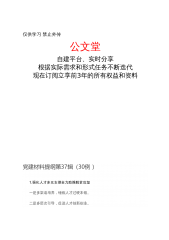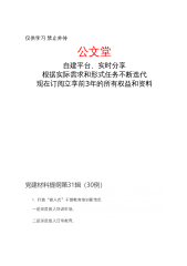 仅供学习禁止外传公文堂自建平台、实时分享根据实际需求和形式任务不断迭代现在订阅立享前3年的所有权益和资料党建材料提纲第33辑(30例)1.县人大坚持“三个着力”助推机关党建提质增效坚持抓好思想引领,着力在夯实党员队伍基础上下功夫。坚持抓好组织建设,着力在提升党建带群建水平下功夫。坚持抓好党员培训,着力在提升党员综合素质上下功夫。2.严织“四网”激发非公和社会组织党建活力织密“体制网”。织牢“规范网”。织严“覆盖网”。织好“品牌网”。3.“五个聚焦”提升党建管理服务水平聚焦党建引领基层治理。聚焦易地搬迁后续扶持。聚焦同心聚力脱贫攻坚。聚焦思想政治落地生根。聚焦互联互通培训实效。4.四举措扎实开展...