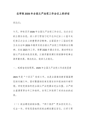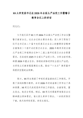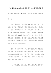 (24篇)在2026年全面从严治党工作会议上的讲话XX大学党委书记在2026年全面从严治党工作会议上的讲话同志们: 今天,我们在这里召开学校2026年全面从严治党工作会议,主要任务是深入学习贯彻党的二十大及二十届历次全会精神,全面落实中央和省、市纪委全会部署要求,总结2025年学校全面从严治党工作成效,分析当前面临的形势与挑战,部署2026年重点工作任务,进一步统一思想、凝聚共识、压实责任,推动学校全面从严治党向纵深发展向基层延伸,为学校“一高一本”战略攻坚提供坚强的政治保障、组织保障和作风保障。 刚才,校长同志主持会议,对本次会议的落实提出了初步要求,稍后纪委书记同志还将作纪委工作报告,全面回顾2025年纪检监察工作,部署今年的监督执纪重点任务,大家要认真学习领会、抓好贯彻落实。下面,...