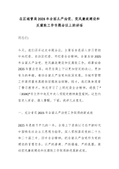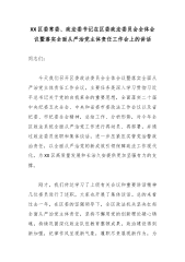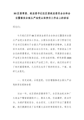 XX区委常委、政法委书记在区委政法委员会全体会议暨落实全面从严治党主体责任工作会上的讲话同志们: 今天我们召开区委政法委员会全体会议暨落实全面从严治党主体责任工作会议,主要任务是深入学习贯彻习近平总书记关于党的自我革命的重要思想,全面落实二十届中央纪委五次全会、中央和省委市委政法工作会议以及省纪委、市纪委全会精神,总结工作、分析形势,对今年全区政法系统全面从严治党工作进行再动员、再部署,并通过政法委员述职和集体谈话,进一步压紧压实管党治警政治责任,以全面从严治党的新成效引领保障政法工作现代化,为XX区高质量发展和长治久安提供更加坚强有力的支撑。 刚才,我们传达学习了上级有关会议和重要讲话精神几位委员进行了述职,大家也开展了集体谈话。总的来看过去一年,在区委的坚强领导下,全区政法机关坚决扛...