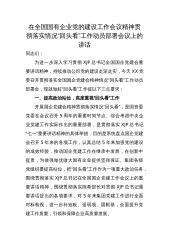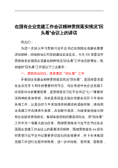 在全国国有企业党的建设工作会议精神贯彻落实情况“回头看”工作动员部署会议上的讲话同志们:为进一步深入学习贯彻XJP总书记全国国企党建会重要讲话精神,持续推动公司党的建设走深走实,今天XX党委召开贯彻落实全国国企党建会精神情况“回头看”工作动员部署会,现就做好“回头看”工作提以下三点要求:一、提高政治站位,高度重视“回头看”工作开展国企党建会精神贯彻落实情况“回头看”,是国资委党委在会议召开5周年的重要时间节点、综合考虑中央企业党建工作实际作出的重要部署,是贯彻落实XJP总书记“七一”重要讲话精神的具体举措,目的是系统盘点国企党建会召开5年来的各项工作,认真总结5年来加强党的建设的成效经验,推动...