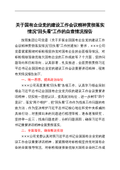 关于国有企业党的建设工作会议精神贯彻落实情况“回头看”工作的自查情况报告按照集团公司党委《关于开展全国国有企业党的建设工作会议精神贯彻落实情况“回头看”工作的通知》要求,×××公司党委紧紧围绕对标检视坚持党对国有企业的全面领导情况、对标检视做强做优做大国有企业的工作成效等7个方面,坚持问题导向和目标导向,认真部署,扎实推进,全面贯彻贯彻习近平总书记全国国有企业党的建设工作会议重要讲话精神,现将有关情况报告如下。一、统一思想,提高政治站位×××公司高度重视“回头看”各项工作。认真学习领会深刻领会习近平总书记全国国有企业党叧収的建设工作会议重要讲话精神,切实统一思想认识,提高政治站位,进一步树牢“...