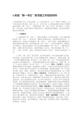 x街道“第一书记”抓党建工作经验材料xx街道党委下设xx个社区党委、xx个社区党总支、xx个“两新”党组织、xxx个村改居社区党支部,党员xxxx名。去年以来,xx街道选派机关党员干部担任基层党组织“第一书记”,并围绕发挥“第一书记”作用,着力健全“三四双联”工作机制,收到了推动干部转变作风、加强基层组织建设、促进改革发展稳定的多重效果。一、主要做法1、选好四类“第一书记”,让群众信得过。针对社区特点,对口选派相应特长的“第一书记”。对项目多、棚改任务重的社区,派驻基层经验丰富、工作踏实认真、有群众工作基础的“第一书记”;对班子老化、软弱涣散的社区,派驻党群业务能力强、综合素质高的“第一书记”...