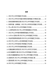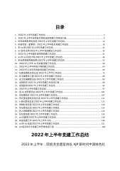 目录1.2022年上半年党建工作总结....................................................42.2022年上半年乡村振兴局党支部党建工作情况汇报..........103.区经信商务局党支部2022年上半年党建工作总结.............154.区研究室(参事室)2022年上半年机关党建工作总结......195.市xx局2022年上半年党建工作总结....................................256.xx县司法局2022年上半年党的建设工作总结....................337.2022年上半年城市...