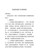 2022年度抓基层党委书记抓党建工作述职报告(36篇)1.镇党委书记2022年抓党建工作述职报告根据会议安排,现将本人履行抓基层党建“第一责任人”情况报告如下:一、履职工作特色和亮点一是持续压实党建主体责任,打造过硬干部队伍。作为一班之长,特别注重提高班子战斗力、干部队伍凝聚力、基层党组织向心力。在班子建设上,注重明方向,强指导,重支持,班子成员求同存异,互相支持,形成了“凝聚在一起、拧成一股绳”的战斗力。在机关干部%伍建设上,注重靠实班子成员“传帮带”责任,从严从实从细管理培养干部,干部队伍能力素质明显提升。对村党组织带头人和广大党员,坚持高标准,严要求,围绕党支部建设标准化和“四抓两整治”...