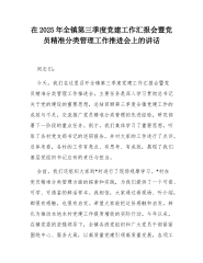 在2025年全镇第三季度党建工作汇报会暨党员精准分类管理工作推进会上的讲话