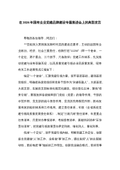 在2024年国资国企党建和全面从严治党工作会议暨党建品牌交流会上的讲话