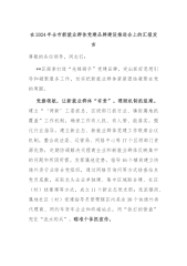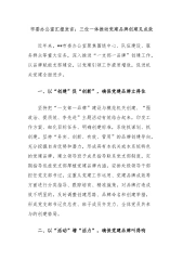 在2024年国有企业党建品牌创建工作推进会上的汇报发言尊敬的各位领导,同志们:**公司认真贯彻落实习近平新时代中国特色社会主义思想,深入探索党建工作与生产经营深度融合的具体路径和方法,着力推进“三融四创”品牌建设,探索形成了“四融四力”党建工作模式,为企业转型升级高质量发展提供了坚强保证。一、将党的领导融入公司法人治理结构,提升党组织领导力,确保企业行稳致远**公司以党的全面领导为根本原则,坚决拥护“两个确立”,坚定不移贯彻落实好“两个一以贯之”的重要要求,把党的领导融入企业治理各环节,把企业党组织内嵌到企业治理结构之中,打造党委领导核心和现代企业管理的公司治理双重优势,使党组织成为企业法人治...