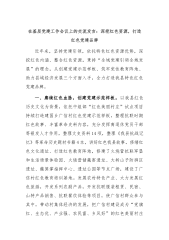 在基层党建工作会议上的交流发言:深挖红色资源,打造红色党建品牌近年来,坚持党建引领,依托特色红色资源优势,深挖红色内涵、整合红色资源,秉持“全域党建引领全域发展”的理念,从创建党建示范样板、筑牢党性教育阵地、助力县域经济发展三个方面入手,全力打造我县特色红色党建品牌。一、赓续红色血脉,创建党建示范样板。以我县红色历史文化为背景,依托中组部“红色美丽村庄”试点项目持续打造建国乡广信村红色党建示范样板,整理抗联时期红色故事、丰富革命史料内容,充分发挥离退休党员干部等银发人才作用,整理文史资料14项,整理《我县抗战记忆》等革命历史题材书籍4本,讲好红色我县故事。修缮红色文化遗址、打造红色教育阵地,修...