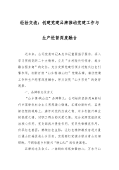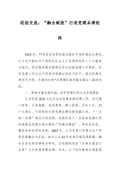 经验交流:着力打造“四个深度融合”党建品牌坚持以高质量党建引领高质量发展
