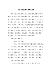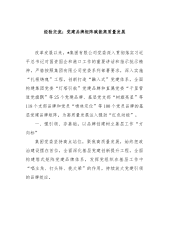 经验交流:着力打造“四个深度融合”党建品牌坚持以高质量党建引领高质量发展近年来,*集团深入学习贯彻A总书记重要讲话精神,始终把促进高质量发展作为党建工作的出发点和落脚点,坚持将学习贯彻A新时代中国特色社会主义思想主题教育与推动实现“1145”发展战略结合起来,着力从制度机制、强基固本、干部人才、服务大局四个方面做好融合文章,全力打造“四个深度融合”党建品牌,为集团公司高质量发展赋能增效。(一)着力在制度机制上深度融合,构建高质量发展根本保障坚持党建与经营同谋划、同部署、同落实、同考核,推动党建优势转化为治理效能、发展优势。首先,制度先行抓规范。注重把党的领导融入公司治理结构,实现权属企业“党建...