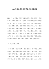 区直机关工委书记在2025年基层党组织书记抓党建述职评议工作会上的主持讲话同志们:根据工作安排,今天组织召开2025年基层党组织书记抓基层党建工作述职评议会,主题是:深入学习贯彻新时代中国特色社会主义思想和党的二十大及党的二十届二中、三中、四中全会精神,学习贯彻总书记关于机关党建的重要讲话和指示批示精神,巩固拓展深入贯彻中央八项规定精神学习教育成果,全面提升党支部组织力和政治功能,充分发挥基层党组织战斗堡垒作用,推动基层基础工作全面提升、全面进步。今天的会议议程有三项:一是汇报区直机关工委2025年党建工作完成情况;二是请各基层党组织书记进行述职;三是由组织部门领导作指导发言;四是由我总结讲话。下面,会议依次进行。首先,进行第一项议程,由我汇报区直机关工委2025年度党建工作完成情况。今年以...