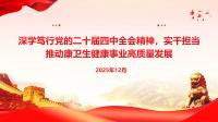 深学笃行党的二十届四中全会精神,实干担当推动康卫生健康事业高质量发展2025年12月前言党的二十届四中全会,是在我国迈上全面建设社会主义现代化国家新征程、向第二个百年奋斗目标进军的关键时刻召开的一次具有里程碑意义的重要会议。全会擘画了未来五年国家发展的宏伟蓝图,明确了前进方向、目标任务和重大举措,为我们奋进新征程提供了根本遵循和行动纲领。作为守护人民群众生命健康的第一线,作为党领导下卫生健康事业的重要组成部分,要把思想和行动统一到党的二十届四中全会精神上来,深入领会和贯彻落实全会对卫生健康作出的重大部署,坚定不移推动高质量发展,积极服务和融入新发展格局,实施健康优先发展战略,持续深化医药卫生体制改革,做强做优卫生健康服务体系,促进中西医结合,不断推进健康中国建设,为经济社会高质量发展作出应有...